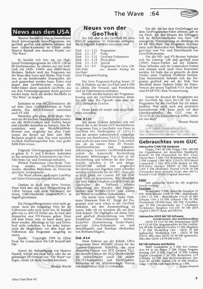 ! - - - - - M I C R O F I L M - - - - - ! | Editorial | Geos auf dem Datenhighway | News Regio Hannover | News Regio Sachsen-Anhalt | News Regio Rhein Main | News Regio Baden | Geos 64/128 & Stylus Color Drucker | Großer Wettbewerb | News Regio 34+++ | Test: TopDesk V3.0 für Geos 128 | Man "spricht" deutsch ... | News aus den USA | Neues von der GeoThek | CMD und der GUC | Tips und Tricks zu GeoCalc | Hannover: GeoBox 3 | Switch-Boxen | Info: PD und Shareware | GeoAdapt | PD Disk für GWE2 | v2.01d Update | 256 Farben? | AOL & Geoworks | Neue GEOS PDA´s | GUC CD #2 | Printworks - neue Fonts für GWE | Export GeoDraw zu Windows - ... und es geht doch! | Bugfix zum Bugfix-Bugfix | Abkürzungen in GeoWrite | Geos als Ersatz für die WPS von OS/2 | GeoUhr als Taktgeber | Leserbriefe | Neuer Videotreiber für GWE2 | Fax 9000 | 256 Farben für Geoworks | Help Editor, eine kleine Einführung | Neue GWE2 Programme ... | 3DTEXT.BAS für "3D-Objekt" | Leserbrief | CD3 ... das Ordnungswunder für CDs | JHT & neue Programme | CD Service