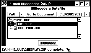 Der Empfänger der Datei bekommt in Windows E-Mail Programmen (z. B. Pegasus, Eudora, Netscape) den unlesbaren Text, welcher die konvertierte Datei darstellt, nicht zu sehen und kann diesen direkt als Datei abspeichern bzw. auch anschauen. Anders in NewMail. Entsprechend muß sich der Empfänger der E-Mail mit Dateianhang selber um die Wandlung der Textdatei zurück in die Originalform kümmern. Zur Wandlung einer Datei in einen Dateianhang stehen zwei verschiedene Formate zur Verfügung. Dies sind MIME und UUE. NewMail liefert keine Möglichkeit zur Rückwandlung des Dateianhangs in die originale Datei mit. Dazu sind andere Programme einzusetzen. Unter GEOS steht seit langem ein Programm für diese Aufgabe zur Verfügung. Dies ist der "uucoder for GEOS" von B.J. Hulst. Aufgrund der Situation, das es "uuencoder for GEOS" gibt, sollten alle NewMail Anwender die Voreinstellung auf UUE einstellen. Werden diese Dateien von anderen E-Mail Programmen wie z.B. Netscape empfangen, ist es völlig, egal ob der Dateiversand per MIME oder UUE erfolgte. Die meisten herkömmlichen Programme wie z.B. Netscape oder Pegasus versenden allerdings Dateianhänge im MIME Format. Zur Rückwandlung dieser Textdateianhänge steht derzeit kein NewDOS Programm zur Verfügung. Aber es gibt einige reine DOS Programme und natürlich auch Windows Programme, die solche Dateien in die originalen zurückverwandeln können. Für NewDOS Anwender sind dabei die DOS Programme interessant. Diese lassen sich in die GEOS.INI einbinden und dadurch kann die Rückwandlung mittels Doppelklick auf eine MIME Datei ausgelöst werden. Der Eintrag in der GEOS.INI unter der Rubrik [fileManager] muß - abhängig vom Namen der Wandlungsprogramms und dem Pfad - lauten: dosAssociations = { *.ARJ = c:\packer\ARJ.EXE *.LZH = c:\packer\LHA.EXE *.ZIP = c:\packer\pkzip\PKUNZIP.EXE dummy.fil = C:\packer\lharc.exe *.MIM = c:\mime_uue\mime64.exe *.UUE = c:\mime_uue\uud.com } Die Programme MIME64.EXE und UUD.COM sind beim Geos User Club erhältlich und werden auch auf dem Server www.geosuserclub.com zur Verfügung gestellt. Damit steht dem Versand und dem Empfangen von Dateien mittels NewMail nichts mehr im Wege. Jürgen Heinisch