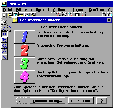 Die Benutzerebenen Auswahl für NewWrite wird hier angezeigt. Dies ist eine weitere Dialogbox.