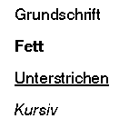 Vielleicht wollen Sie den Text von der Grundschrift auf Fett oder Unterstrichen oder gar kursiv ändern. Wählen Sie den entsprechenden Text aus und klicken Sie mit der linken Maustaste auf das entsprechende Werkzeug.