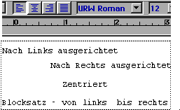 Wenn Sie irgendeinen Text schreiben, soll er vielleicht immer am linken Rand anfangen, oder vielleicht stets am rechten Rand oder auch zentriert zwischen den Rändern. Vielleicht soll der Text auch vom linken zum rechten Rand gehen? Wählen Sie den Text aus und klicken Sie dann auf das entsprechende AUSRICHTUNG-Werkzeug.
