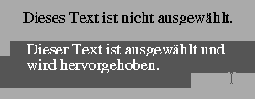Sie werden mit Text oder Grafik (Bildern) arbeiten. Um Änderungen daran vorzunehmen, müssen Sie den entsprechenden Teil zuerst auswählen. Errinnern Sie sich ? Sie müssen dazu mit der linke, gedrückten Maustaste über den entsprechenden Teil fahren. Erst dann lassen Sie die Maustaste wieder los. Dies sieht dann ungefähr so aus:
