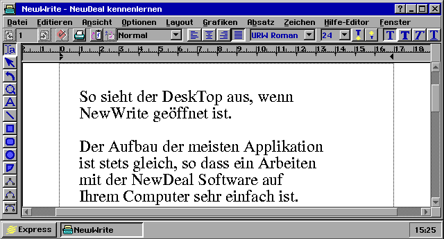 Dies ist ein FENSTER. Ein Fenster wird geöffnet, wenn eine Applikation gestartet wird. Es wird Fenster genannt, weil man damit in eine Applikation sehen kann. Sie haben nur ein Desktop. Sie können mehrere Fenster zur gleichen Zeit geöffnet haben. Sie werden mehr über Fenster später erfahren.